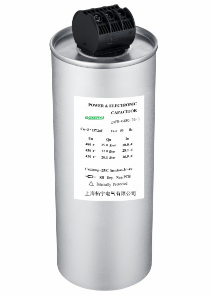 過壓力切斷裝置確保電容器出現(xiàn)故障時切斷與電網(wǎng)連接,確保電容器防爆。