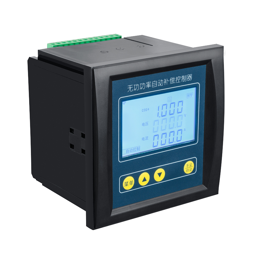 全數(shù)字化設(shè)計,交流采樣,人機(jī)界面采用大屏幕LCD中文液晶顯示器??蓪?shí)時顯示L1、L2、L3各相功率因素、電壓、電流、有功功率、無功功率、電壓總諧波畸變率、電流總諧波畸變率、頻率、電容輸出顯示及投切狀態(tài)、報警等信息。中文提示設(shè)置參數(shù)、數(shù)字輸入。電容器控制方案支持三相補(bǔ)償、分相補(bǔ)償、綜合補(bǔ)償方案,可通過菜單操作設(shè)置控制方案。電容器投切控制程序支持等容、編碼及模糊控制投切方式。具有手動補(bǔ)償、自動補(bǔ)償兩種工作方式。取樣物理量為無功功率,具有諧波測量及保護(hù)功能。